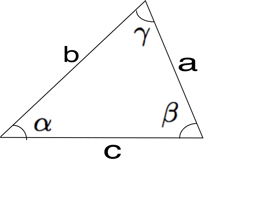 a) Cosinus-satsen ger att $a^2=b^2+c^2-2bc\cos\alpha$, vilket ger att \[\cos\alpha =\dfrac{6^2+5^2-4^2}{2\cdot 5\cdot 6}=\frac34 \Rightarrow \alpha\approx 0.72.\]På samma sätt får vi \[\cos\beta =\dfrac{6^2+4^2-5^2}{2\cdot 4\cdot 6}=\dfrac{9}{16} \Rightarrow \beta\approx 0.97,\]\[\cos\gamma =\dfrac{4^2+5^2-6^2}{2\cdot 4\cdot 5}=\dfrac{1}{8} \Rightarrow \gamma\approx 1.45.\]