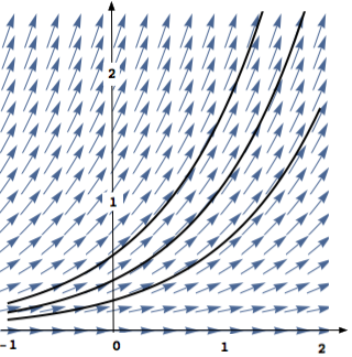 Här visas tangentfältet tillsammans med några lösningskurvor.